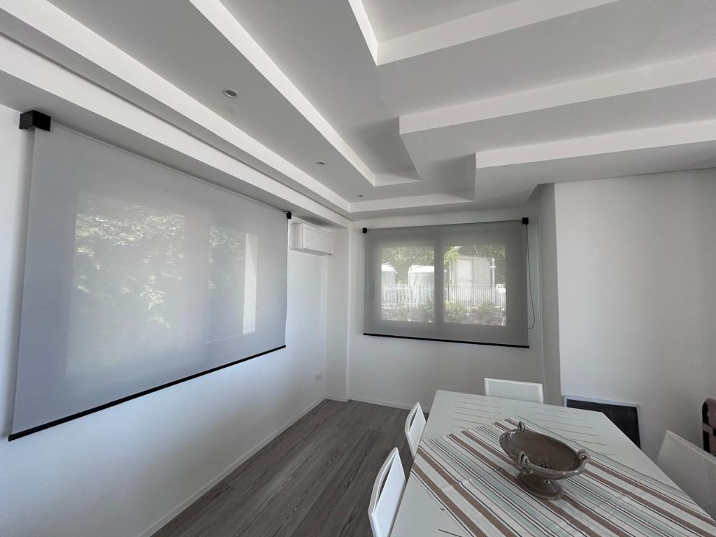 In questo intervento abbiamo realizzato l’installazione di una tenda a rullo con tessuto screen, soluzione ideale per filtrare la luce e proteggere l’ambiente dal sole mantenendo comfort e privacy.