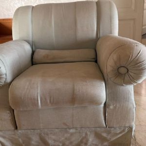 In questo intervento abbiamo seguito passo dopo passo la trasformazione di una poltrona, rivestendola con un tessuto in velluto colorato dallo stile vintage.