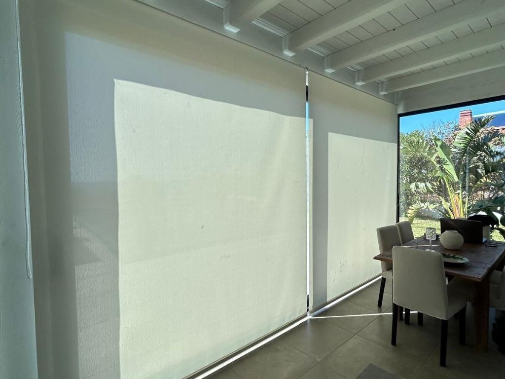 Il tessuto screen filtra i raggi solari, riduce l’abbagliamento e contribuisce al comfort termico, mantenendo allo stesso tempo una piacevole percezione della luce esterna.