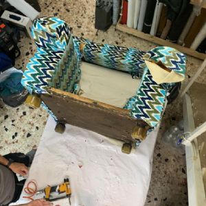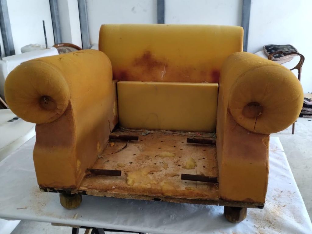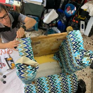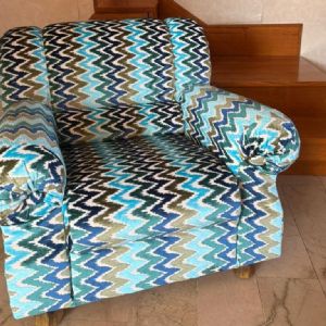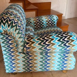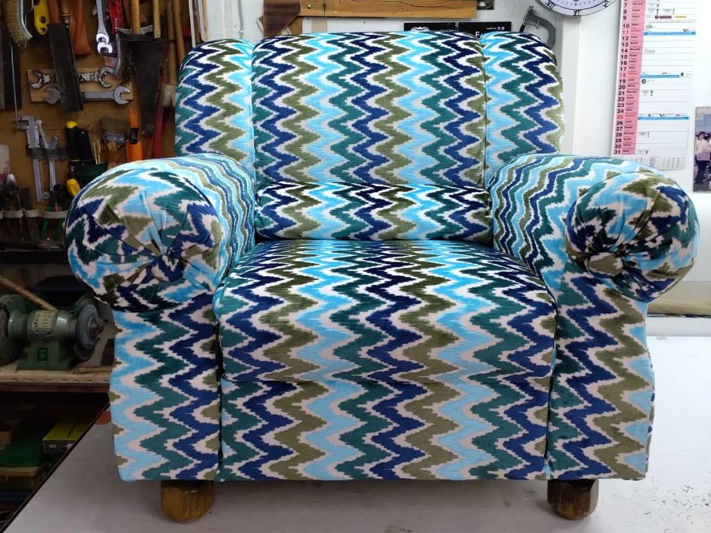 In questo intervento abbiamo seguito passo dopo passo la trasformazione di una poltrona, rivestendola con un tessuto in velluto colorato dallo stile vintage.