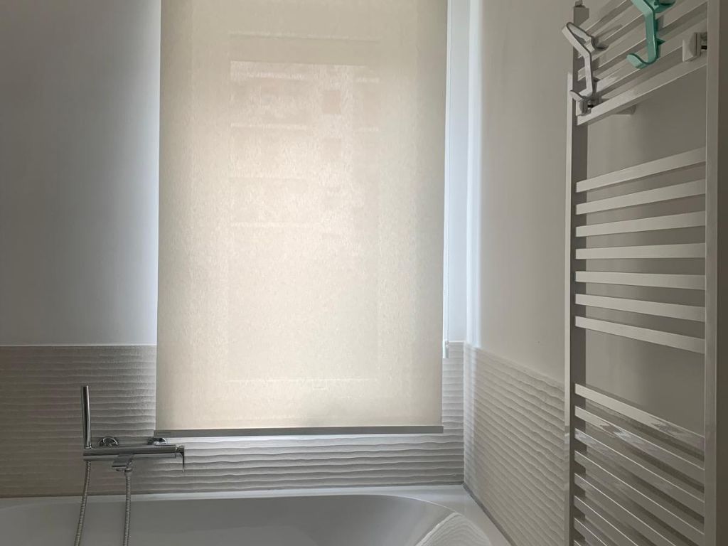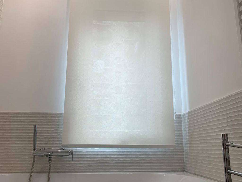 Il risultato è uno spazio che respira, dove la luce filtra con dolcezza e il tessuto diventa parte integrante dell’arredo.